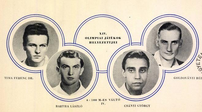 Részt vett az 1948-as londoni olimpián, ahol a 100 méteres síkfutásban már az előfutamok során kiesett. A 4 × 100 méteres váltófutásban a Tima Ferenc, Bartha László, Csányi György, Goldoványi Béla váltó az esélyesek közé tartozott. A versenyszám döntőjében a magyar válogatott a negyedik helyen ért célba az Egyesült Államok, Nagy-Britannia és Olaszország váltója mögött. A verseny után a zsűri az amerikai váltót túlváltás miatt diszkvalifikálta és az eredményhirdetéskor a magyar váltó állhatott fel a dobogóra, felhúzták a magyar zászlót és a váltó tagjai bronzérmet kaptak. Az amerikaiak azonban óvtak, és másnap a zsűri a versenyről készített film alapján megállapította, hogy nem történt szabálytalanság, helyt adtak az óvásnak, így az eredeti befutási sorrendet fogadták el. Ennek megfelelően a magyar váltónak vissza kellett adni a bronzérmet. Mindenesetre érdekesség, hogy az olimpiák történetében ők az egyetlen negyedik helyezettek, akik dobogóra állhattak és felhúzták tiszteletükre a magyar zászlót is.