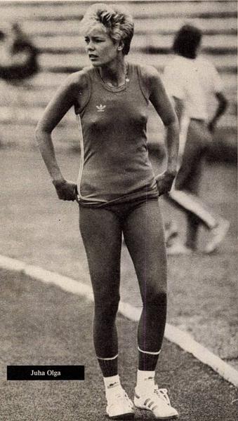 Juha Olga már serdülőkorától a hazai magasugrás korosztályos élvonalába tartozott. A felnőttek között, a kor igen erős hazai mezőnyében három alkalommal nyert magyar bajnokságot: kétszer szabadtéren (1984, 1987) és egyszer fedettpályán (1990). Magas szintű pályafutásának csúcséve volt az 1983-as, amikor az atlétikai világbajnokságon döntőbe jutott, nyolcadik helyen végzett, és abban az évben érte el legjobb eredményét is, az akkor országos csúcsot jelentő 197 cm-t. Az olimpiai részvételt és a jó szereplést előrevetítő eredmény ellenére az 1984-es bojkott miatt az ő indulása is elmaradt az ötkarikás játékokon. 1986-ban a stuttgarti Európa-bajnokságon kilencedikként fejezte be a döntőt.