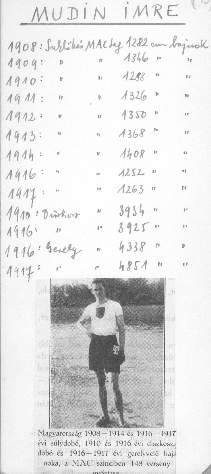 Arról pedig még fényképfelvétel is készült az újság számára, hogy Mudin Imre Doberdón szikladarabok segítségével gyakorolta a súlydobást.