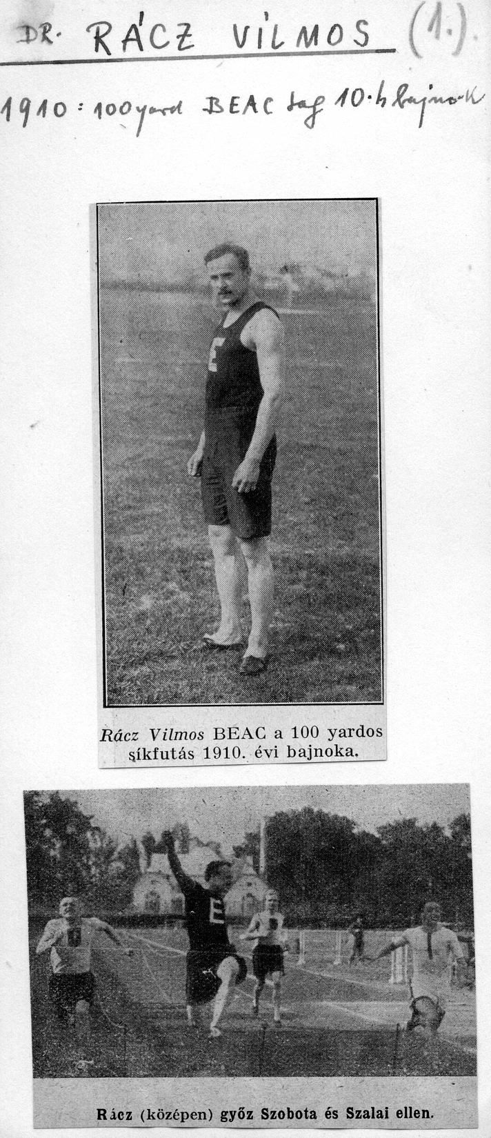 Rácz Vilmos törvénytelen gyermekként 1889. március 31-én született Budapesten, majd középiskolai tanulmányai után, 1907-ben kezdett el versenyszerűen atletizálni sprinterként a Budapesti Egyetemi Atlétikai Club (BEAC) színeiben. Tette mindezt olyan sikeresen, hogy a következő évben már a magyar csapattal utazhatott a londoni olimpiára.