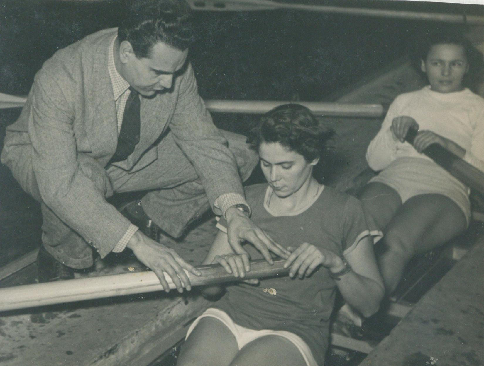 1948 és 1962 között versenyklubbá fejlesztette a Giurghiu Dej Hajógyár Sportkörét a hajógyár vízitelepén, másodállású edzőként. A hajógyári egyesületért úgy is harcolt, hogy a gyárban dolgozó fiataloknak nyújtott lehetőséget evezésre, csakhogy a gyár érezze a klub, a sport jelentőségét, értelmét. 1950-ben lett Pap Kornélia edzője, rendkívül eredményes edzői korszaka ekkor kezdődött. A páratlan edző-tanítvány együttműködés keretében megszületett a sportág első hazai női Európa-bajnoki aranyérme, és a rá következő években (1958–1960) további három. Az 1950-es évek második felében Pap Kornélia és Sólyom Andrásné élversenyzők felkészülésének irányítása, a klub vezetése mellett evezésre oktatta a TF hallgatóit, a Gh. Dej Hajógyár vízitelepén a nyári hónapokban gyakorlati továbbképzést tartott számukra. 1960 márciusában a Magyar Testnevelési és Sport Tanács elnöksége a mesteredzői cím adományozásával ismerte el addigi edzői tevékenységét, különös tekintettel Pap Kornélia Európa-bajnoki győzelmeire.