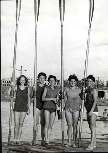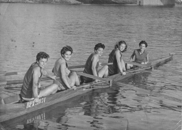 Az evezést 1949 őszén kezdte a Népszigeten (akkori nevén) Szúnyogszigeten, a „Juventus” Első Hölgyevezős Clubban. A klub még a háború előtt, 1936-ban alakult, nem volt önálló telephelye, hanem a „Neptun” Budapesti Evezős Club margitszigeti házát és hajóparkját használták. Miután ezt a klubot betiltották, tagjai, így ő is, a Vasasban folytatták. Hét évig evezett aktív versenyzőként, 1954 és 1957 között öt felnőtt bajnoki aranyérmet szerzett kormányos négyesben (2) és nyolcasban (3).