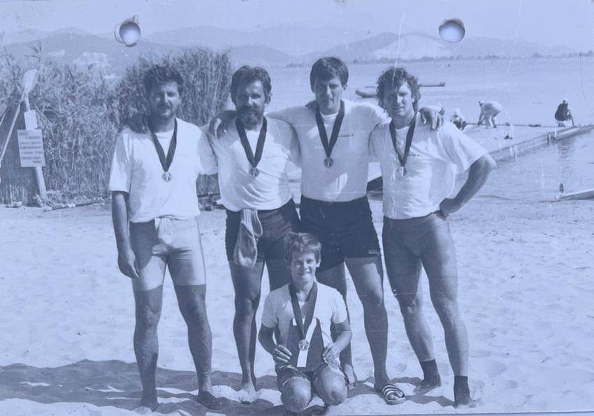 Ezután még 1985-ig Győrben aktívan evezett, bajnoki helyezéseket ért el Velencén és a Maty-éren. Amit aktívan nem sikerült, azt veteránként elérte: 1989 és 1997 között 9 aranyérmet nyert változatos csapatokkal és egységekben, sőt ergométeren Ausztráliában. Továbbra is maradt a sport mellett, de már csak tanmedencében, ergométeren, mert ezután előtérbe került a család és az egzisztencia. 1985-ben feleségül vette Palla Zsuzsanna pedagógust, két gyermekük Olivér (1987) és Levente (1991).