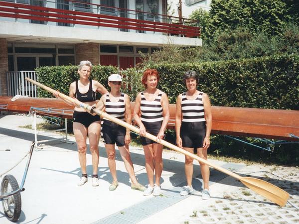 "Októberben újságíró-gyakornoki állásom után (Varga A. Mária az újságíró nevem) egy kis színházban dramaturgként kezdtem dolgozni, így tíz évig hanyagoltam a Dunát" - írta le szakítását. Az 1970-es évek végén dr. Harmath Zoltán főorvos vezetésével elindult a korosztályos, azaz veterán evezés – ma mastersnek nevezik. A „főorvosok csapata", szálfaegyenes 50-esek férfi nyolcasa fölénnyel nyerte az összes létező versenyt. Híresek lettek, meghívták őket Európa klubjai. Velük utazó női versenyzőkre is szükség volt, így újra beülhettek kissé megöregedett kormányos négyeseikbe. "1976 körül az MTK csónakházból kaptuk a hajókat, hamarosan nyolcasban is jártunk versenyezni. Tíz éven át Drezda, Hamburg, Lübeck, Heidelberg, Kerteminde, Amszterdam evezőseivel versenyeztünk úgy, hogy ők adták a hajót. Jobbat a hazainál. Ekkoriban a Népszabadság utolsó oldalán, a sportrovatban jelentek meg glosszáim evezésről, más vízisportról, extrém sportokról. Közben a Vasasba is lejártam szkiffelni." 1979-ben Ribáry Zoltán vezetőedző megkérte, hogy a Budapest-bajnokságra és az országosra is üljön be a nyolcasba, mert egy ember hiányzik. Tatán volt mindkét verseny, célfotóval, illetve egy légszekrénnyel lettek másodikok a Csemege mögött, bármilyen csodálatosan vitte hajónkat Melisné Molnár Éva a sztrókhelyen. Ekkor már hároméves kisfia kiabálta a partról: hajrá anyu!