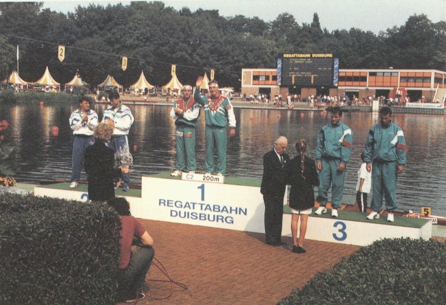A folytatásban már a felnőtt mezőnyben sem leltek legyőzőre, kiléphettek a nemzetközi színtérre, ahol a duó 1993-tól egyedülálló sorozatot kezdett meg a kenusport történetében: 1998-ig összesen 12 világbajnoki címet lapátolt össze. Horváth Csaba – aki időközben technikailag klasszis szintre hozta fel magát és egyedülálló módon tudta sztrókolni a csapathajókat – Kolonics Györggyel párosban hatszor diadalmaskodott, míg a különböző távú négyesek tagjaként hétszer lett világbajnok.