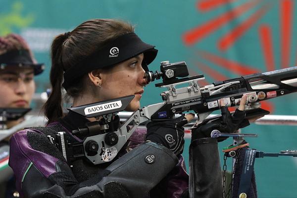 A 2019. szeptemberi felnőtt-Európa-bajnokság idején még csak 17 esztendős volt Bajos Gitta, ám annál nagyobb meglepetést szerzett Bolognában. A női kisöbű sportpuskások 50 méteres hatvanlövéses fekvő testhelyzetű (nem olimpiai) versenyszáma után bronzérmet akasztottak a nyakába. „Szeles volt a pálya, és bár egy irányba fújt, az erőssége kiszámíthatatlan volt. Ez volt a legnagyobb kihívás. Hazai versenyen lőttem már magasabb eredményt is, de így is pályafutásom eddigi legnagyobb sikerét értem el” – értékelt a Nemzeti Sportnak Bajos Gitta, aki kiélezett végjátékban harcolta ki a harmadik helyet: a német Jolyn Beerével azonos eredménnyel fejezte be a 60 lövést, így az utolsó tízes sorozat döntött a javára. Megjegyzendő, hogy az első junior-Európa-bajnoki érmét csak két évvel később szerezte, és meglepetést keltő 2019-es sikere óta csak 10 méteres, azaz légfegyveres kontinenstornákon állhatott fel a dobogóra.