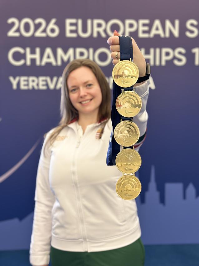 A 2026. márciusi 10 méteres Európa-bajnokság újabb csúcspontot jelentett a karrierjében. Az Örményországi Jerevánban rendezett viadalon ritka bravúrt vitt véghez: öt versenyszámban indult, és öt aranyérmet nyert, kettőt (egyéni és vegyes páros) ráadásul olimpiai számban. „A legnehezebb aranyérmem az egyéni olimpiai versenyszámban elért volt, mert nemcsak az ellenfelekkel, hanem elsősorban magammal küzdöttem a lőállásban. Ebből erőt tudtam meríteni a folytatásra. A Nagy Ákos Károllyal közös számban, a vegyes párosban is titkon bíztam a sikerben, a tavaly a kínai világkupaversenyen szerzett bronzérmünk után minden okunk megvolt a bizakodásra” – értékelte a hibátlan Eb-jét, amelyen még a szóló, a trió és a hagyományos csapatversenyt követően is a dobogó felső fokára állhatott.