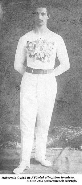 Háberfeld Győző tornászként kezdte sportkarrierjét a Nemzeti Torna Egyletnél (NTE).