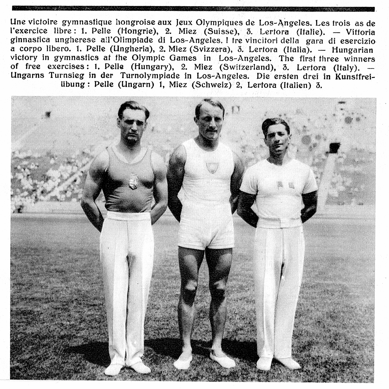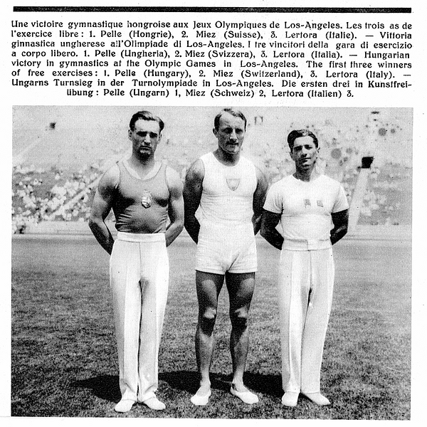 Műszabadgyakorlat, olimpiai bajnok: Pelle István, Magyarország, 2. Georges Miez, Svájc és a 3. helyezett Mario Lertora, Olaszország.