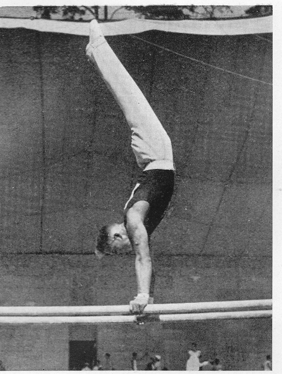 Sarlós József csinálta meg a világon először a hátraszaltót nyújtott testtel, amit el is akartak róla nevezni Sarlós-szaltónak, de abban az időben ennek nem nyilvánítottak nagy jelentőséget.