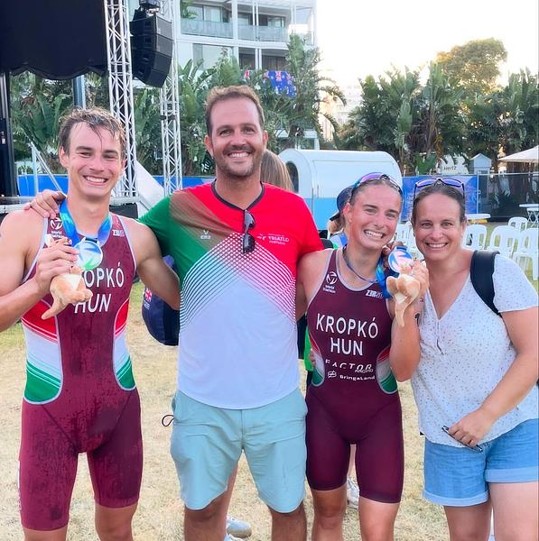 A Kropkó Triatlon Club kis létszámmal működik, de volt, hogy az év végi hazai ranglistán a harmadik legeredményesebb egyesületként zárt. Lánya, Jázmin 2024-ben, 15 évesen a juniorok között az Európa-kupa-viadalokon többször az élmezőnyben végzett, egy évre rá ifiként Európa-bajnoki hetedik lett a juniorkorosztályban, aquatlonban pedig az Eb legfiatalabb indulójaként a juniorok között arany-, a felnőttek mezőnyében ezüstérmet szerzett. Két idősebb gyermeke, Márta és Márton is egyes rajtszámmal indult a 2025-ös U23-as világbajnokságon Ausztráliában, mert a vb előtt mindketten az első helyen álltak a korosztályos ranglistán. Wollongongban Márton ezüst-, Márta bronzérmet szerzett, ami pályafutásuk eddigi legjobb eredménye. A testvérek tagjai voltak az utánpótlás-mixváltónak is, amellyel a hatodik helyen értek célba. Edzőjüket és édesanyjukat, Kropkó Andreát ezért a Magyar Edzők Társasága októberben a hónap utánpótlásedzőjének választotta.