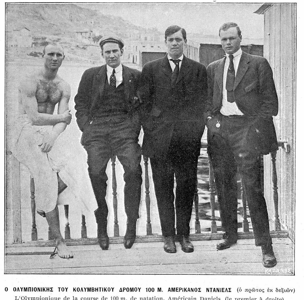 De nézzük Sztankovits visszaemlékezését először: „Kitűnő start után jó darabig együtt haladt a társaság, s még nem lehetett tudni, ki lesz a győztes. Félúton Halmay végre némi előnyt szerzett, de Leary, aki közvetlenül mellette úszott, lehúzta őt, és élethalál-küzdelem fejlődött ki a két ellenfél között. Leary karcsapásai voltak a gyorsabbak, Halmayé az erőteljesebbek. Leary időközönként el-elmaradt, de nyomban behozta. Amikor már csak néhány méternyire voltak a céltól, Halmay teljes erőből belefeküdt, és egy lábnyival (30 cm) előbb ért a célba. Mögöttük két lábbal Daniels jött. Azonnal jelentettem, hogy Halmay volt az első, de ugyanekkor az a célbíró, aki a második helyezettet nézte, szintén Halmayt jelentette másodiknak. Ebből hosszas és kínos vitatkozás, majd kellemetlen verekedés támadt, amibe beleavatkoztak a trénerek és a körülöttünk lábatlankodók is, de nekem alig adott valaki igazat. Már-már ki akarták hirdetni Learyt győztesnek, de erélyes fellépésem miatt elhatározták, hogy a kérdést a vezetőbíró elé viszik. Minden erővel igyekeztek a Ner-Pyrah nevű vezetőbírót befolyásolni, aki azonban mindkét célbírónak egyformán helyt adott, holtversenyt hirdetett ki, és új versenyt rendelt el. Nagy előkészülettel és izgalommal fogtak hozzá az új versenyhez. A sok elővigyázati rendszabály azonban feleslegessé vált, mert Halmay már az indulásnál előnyt szerzett. Úszónk egész úton ura volt a helyzetnek, előnyét folytonosan nagyobbítva, végül 28 másodpercet úszva fölényesen, négylábnyi előnnyel győzte le kemény ellenfelét.”