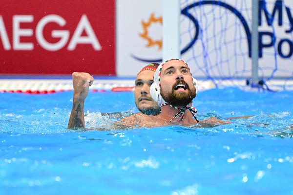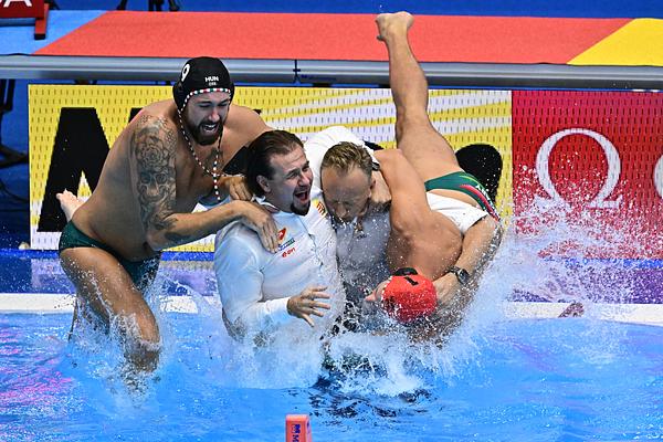 A görögök elleni döntőn ugyan az ellenfél ötmétereseinél egyszer sem nézett oda, a mindent eldöntő Vogel Soma-védés után azért még időben sikerült a medencéhez érnie, hogy sokadszor is az egyik főszereplője lehessen a nagy attrakciónak, amit addig csak a Fradiban „gyakoroltak” a soros aranyérem megnyerése utáni pillanatokban: Varga Zsolt kapitány mámoros vízbetaszajtásának. Így indokolta a tetteit.