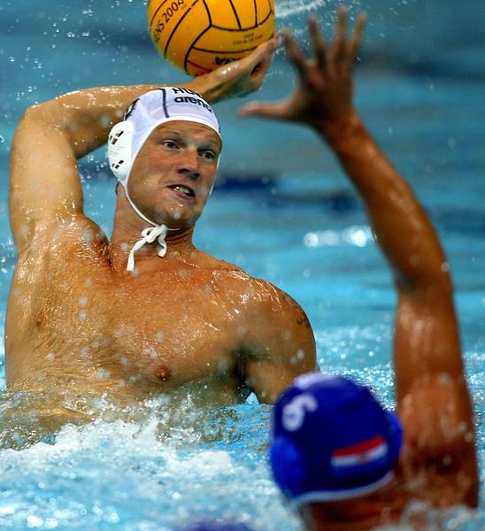 2004-ben Athénba tehát címvédőként érkezett a válogatott. A hatcsapatos csoportból Szerbia és Montenegró 6–4-es, Horvátország 10–8-as, az Egyesült Államok 7–5-ös, Kazahsztán 14–4-es, végül Oroszország 7–6-os legyőzésével, azaz veretlenül lépett tovább, közvetlenül az elődöntőbe. Ott az oroszok következtek, a 7–5-ös győzelem belépőt jelentett a fináléba. Ott Szerbia és Montenegró 8–7-es legyőzése érte az újabb aranyat. Vári Attila e tornán hétszer ugorhatott medencébe (mindannyiszor csereként), és 2 góllal járult hozzá a sikerhez.